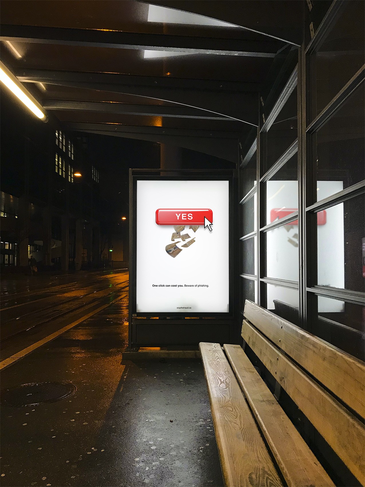 Through posters, a bus shelter ad, a billboard, and a mobile game interstitial, Don’t Take the Bait creates multiple moments of awareness in everyday settings.